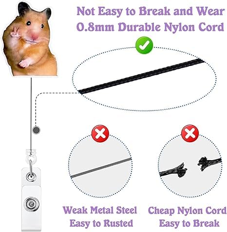 fashion mania - Funny Hamster Badge Reel Retractable for Nurse & Office Staff, with Alligator Clip & 24” Durable Nylon Cord