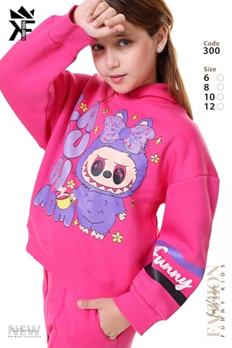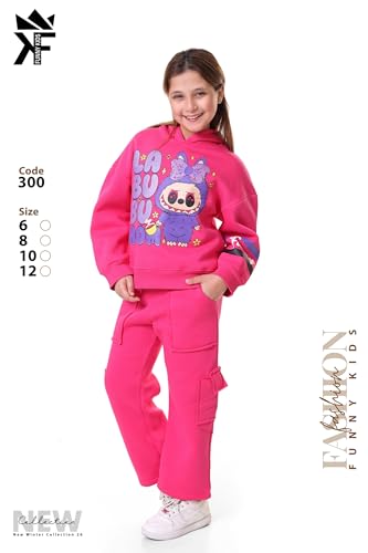 VIKIN'G.EG - Funny Kids Girls Hoodie and Cargo Pants Set, Graphic Print Character Design, Two Piece Tracksuit-FK300
