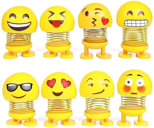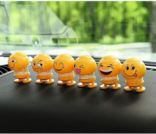 Generic - لعب ايموجي لتابلوه السيارة وهدايا للاطفال على شكل رأس عروسة بوجه مبت سم مرح، زينة سيارة راقصة عبوة من 6 قطع، بلاستيك، كارتون، أصفر , مقاسات متعددة