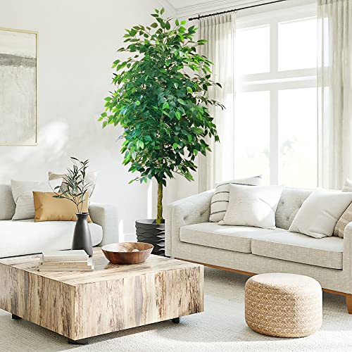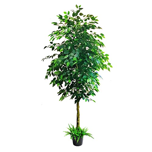FUNORNAM - 7ft Tall Ficus Trees Artificial with 1890 Realistic Leaves for Outdoor Indoor Decor (Green)