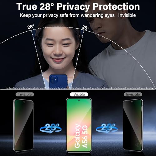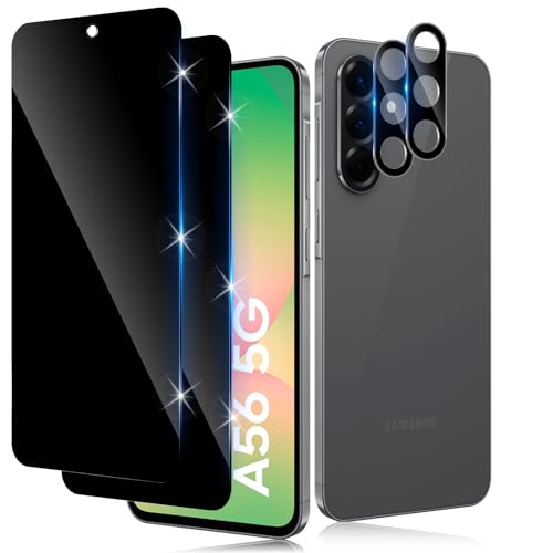 Funrae - Privacy Screen Protector for Samsung Galaxy A56 5G for Tempered Glass with HD Black Camera Protection [2+2 Pieces], 9H Hardness Privacy Scratch-Resistant Anti-Spy Screen Protector Anti Peeping