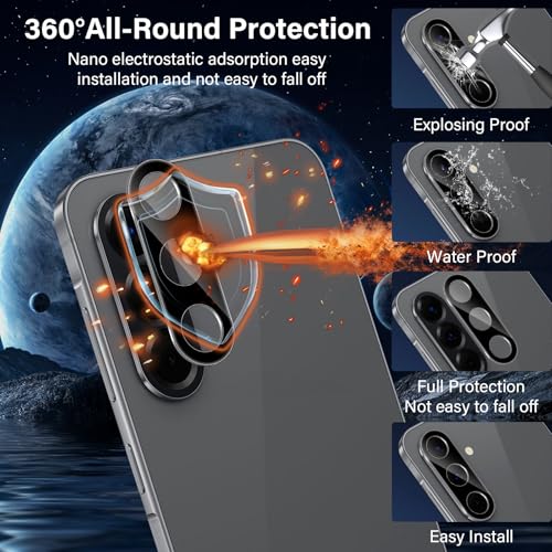 - Camera protective film: the camera protection for Samsung Galaxy A56 5G high-definition camera protects the flash from interference and minimises exposure. Nano electrostatic automatic adsorption technology, easy to install and does not fall off easily, tempered glass with a hardness of up to 9H, can protect the camera from scratches. The ultra-thin lens film is as natural as the original and is compatible with 99.99% of mobile phone cases available on the market. Camera protection