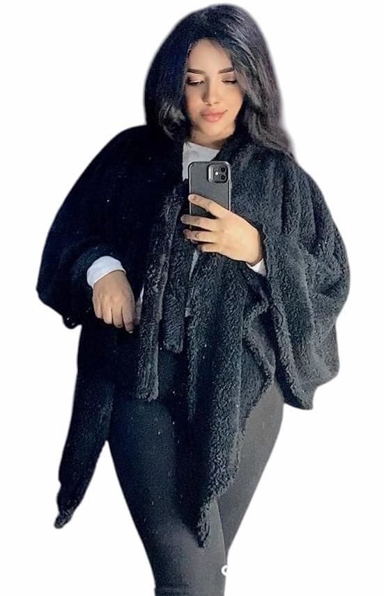 Generic - Fur Veber Drawstring Shawl - Charcoal Black For All