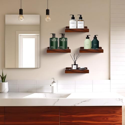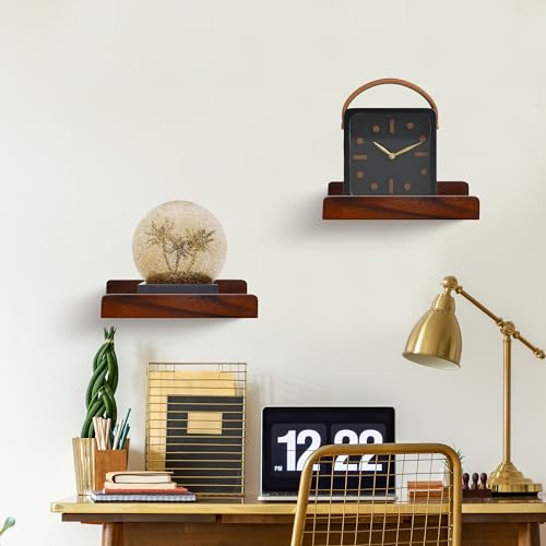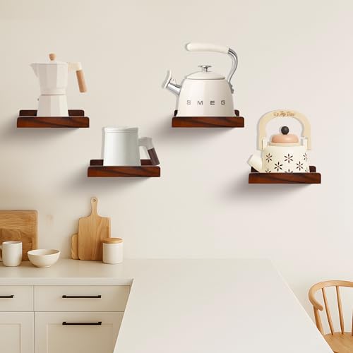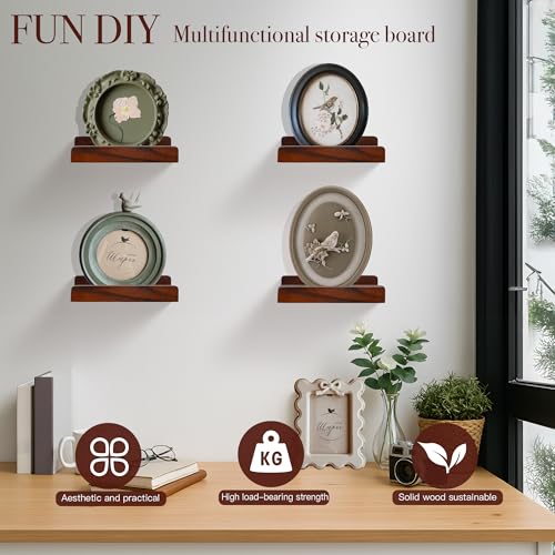FURAOMEILI - رف عائم صغير من فوراوميلي، ارفف حائط صغيرة مع حافة عرض، رف مكبر صوت، مجموعة من 4 قطع لاطارات الصور والنباتات الزخرفية لغرفة المعيشة والمطبخ وغرفة النوم، خشب، 20 سم، خشب الجوز