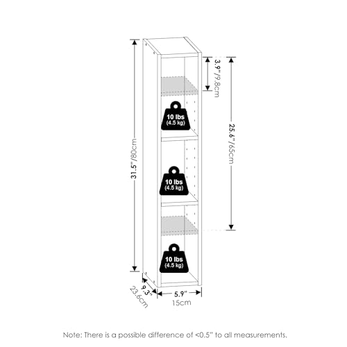 Furinno - Furinno Fulda 3-Tier Space Saving Storage Shelf Bookcase, 6-Inch Width