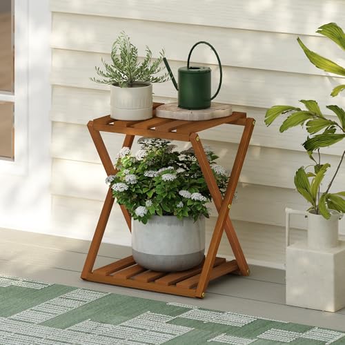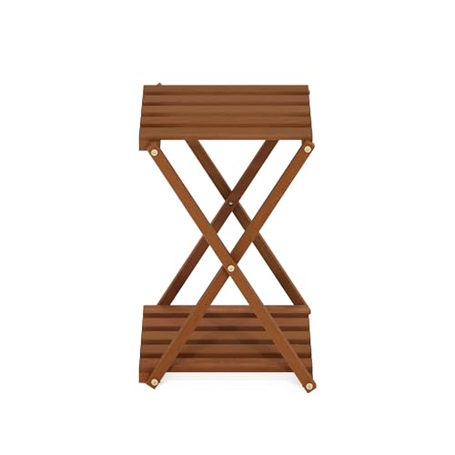 Furinno - Furinno Tioman Outdoor Toolless Multipurpose Folding Display Shelf, Plant Stand, Side Table, 2-Tier, Natural