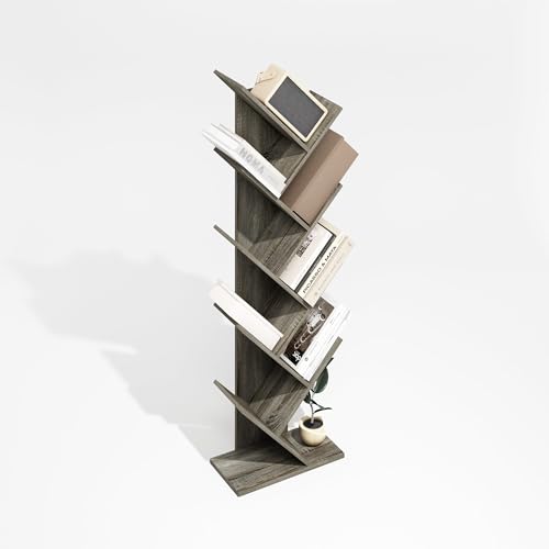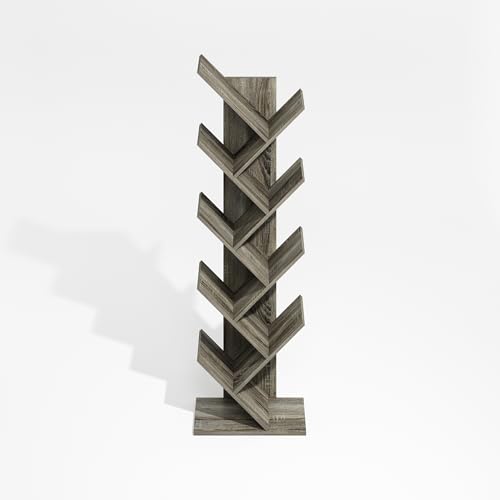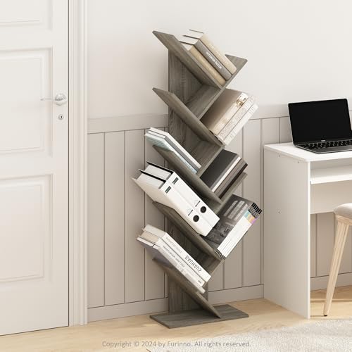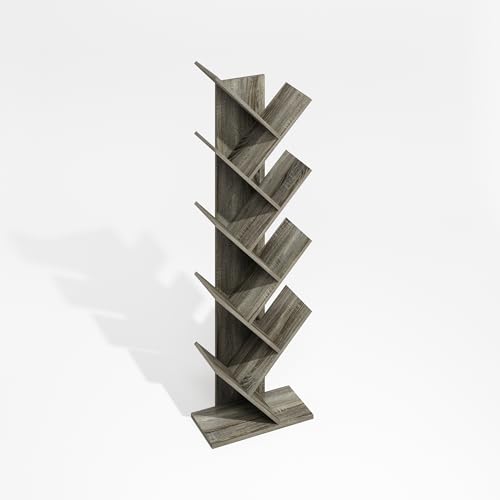 Furinno - Furinno Tree Bookshelf 9-Tier Floor Standing Tree Bookcase, Oak Grey