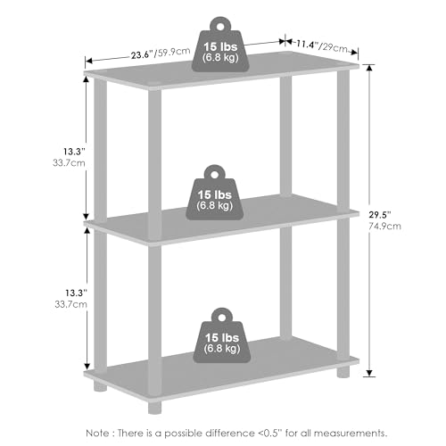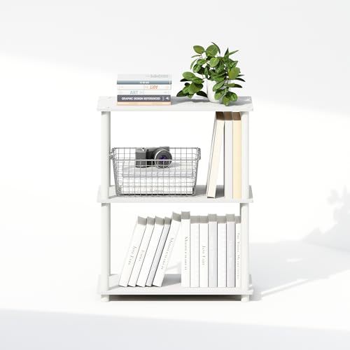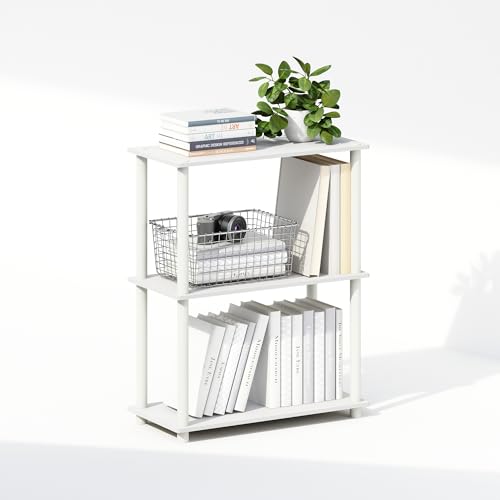 Furinno - فرونو رف عرض صغير متعدد الاغراض مكون من 3 طبقات من تيرن ان تيوب، وحدة ارفف، خزانة كتب، ابيض/ابيض