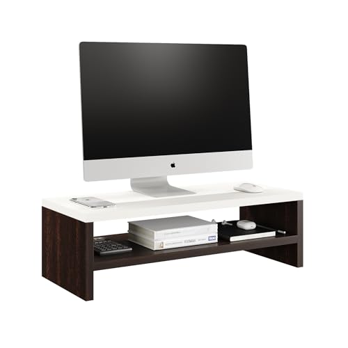 FURNEASER - حامل شاشة خشب، منظم لسطح المكتب، حامل شاشة ولاب توب، منظم لسطح المكتب فلوكسي من فيرنيزر، خشبي وينجي وأبيض