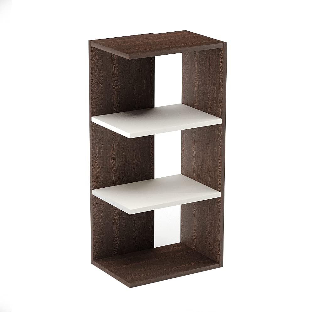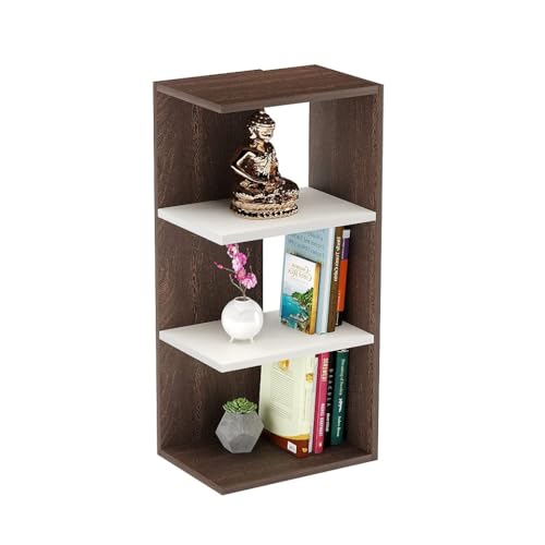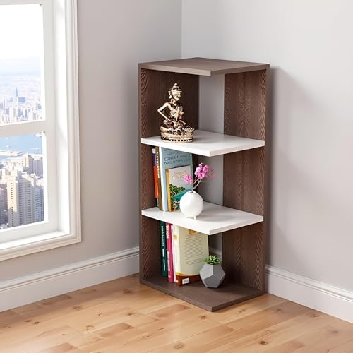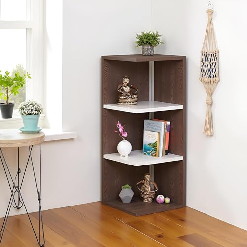 FURNEASER - FURNEASER Rowbell Wooden Corner Wall Shelf for Living Room | 3 Tier Engineered Wood Display Rack for Home Decor, Plants, Books | Modern Space Saving Corner Unit - Wenge & White Finish
