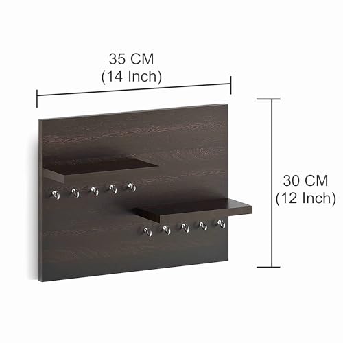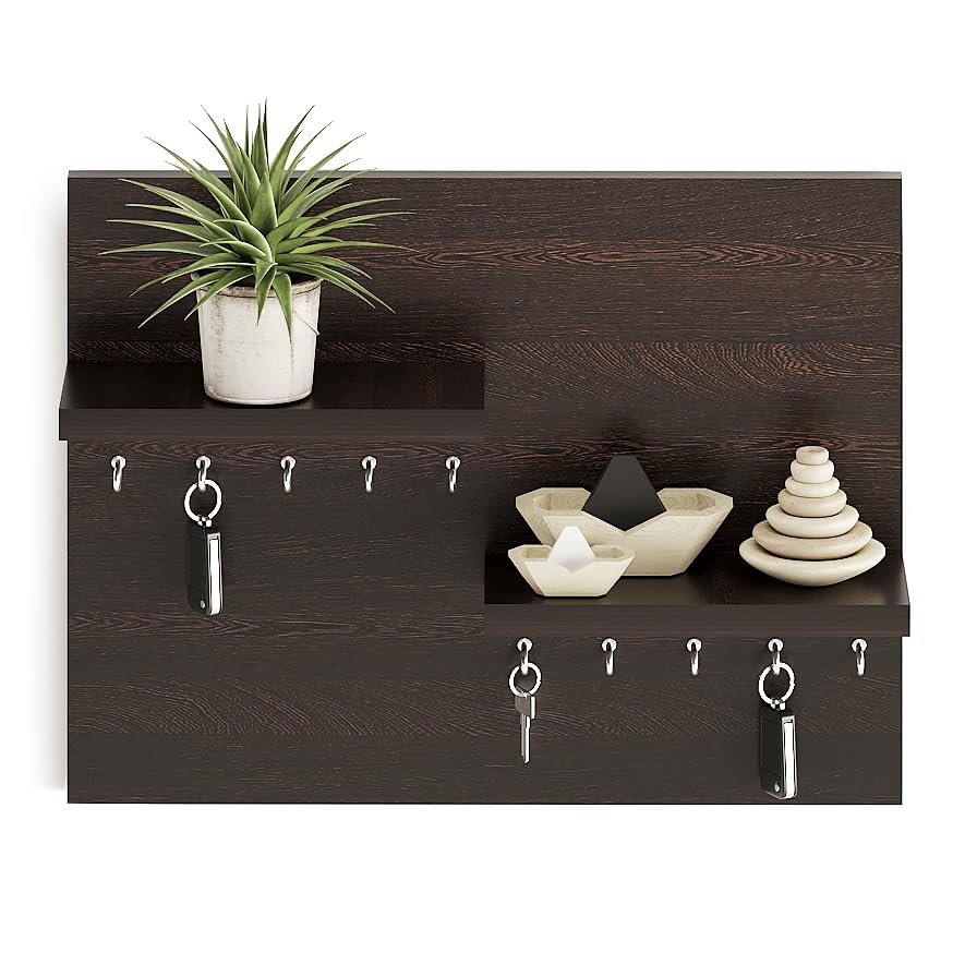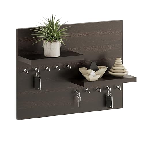 FURNEASER - FURNEASER Sassy Wall Mounted Key Holder for Home with Decorative Display Shelf (8 Hooks) Keys Chain Ring Mobile Holder Stand Organizer (Wenge)