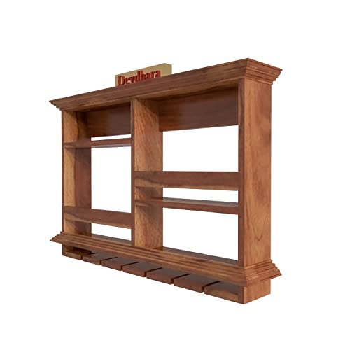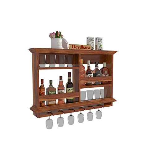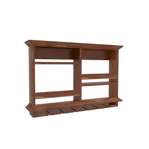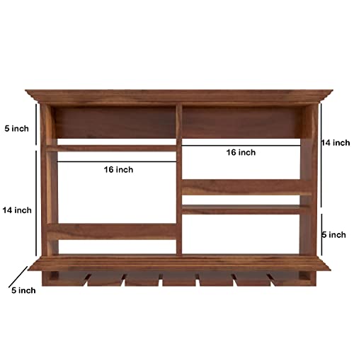 Furnelift - Wooden Wall Mounted Wine Rack Bar Cabinet with Glass Storage - Upside Down Bottom Lift Glass Hanging Organizer for Home Mini Bar - 30x24 Inch Size in Elegant Sheesham Wood