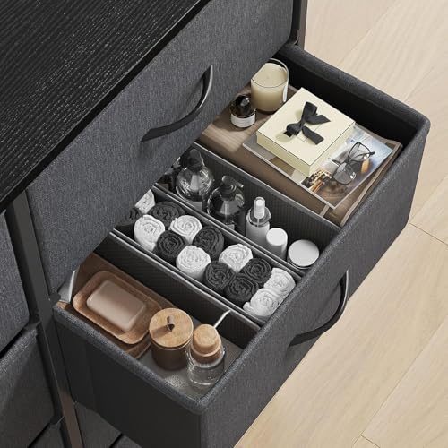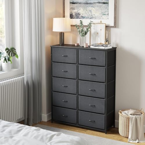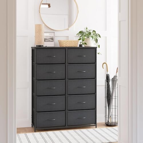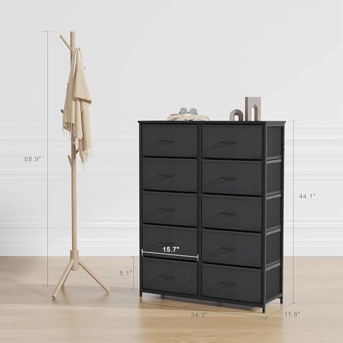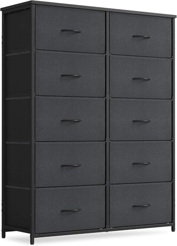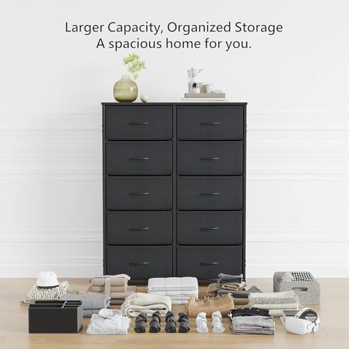FurniFlex - 10 Drawer Tall Wide Storage Organizer Bedroom Dresser, Black/Grey