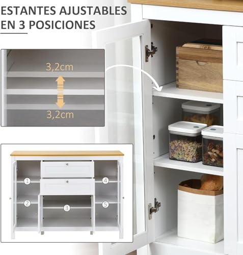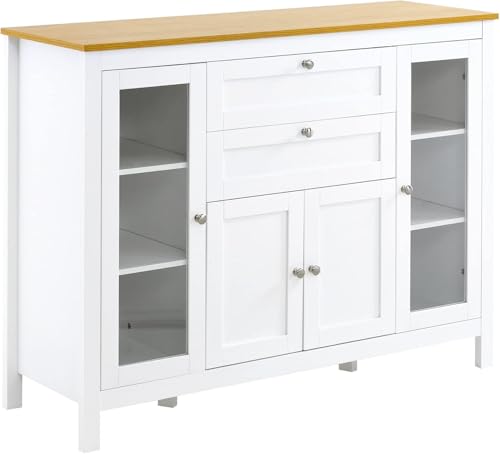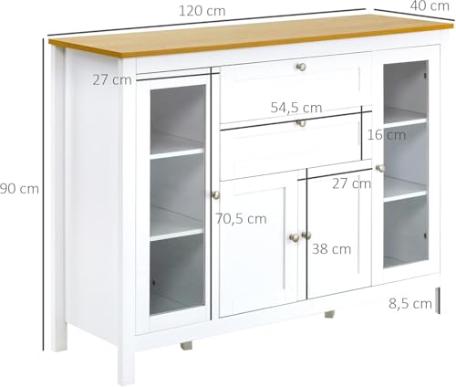 FurniFlex - بوفيه مطبخ بدرجين وبابين زجاجيين من فيرني فليكس، مقاس 1.20 م × 40 سم × 90 سم، أبيض