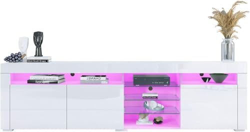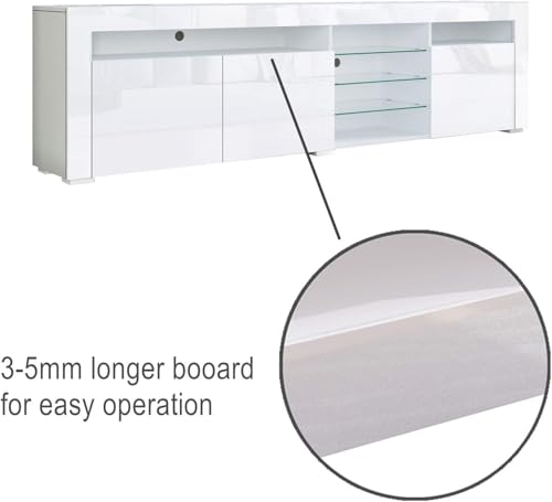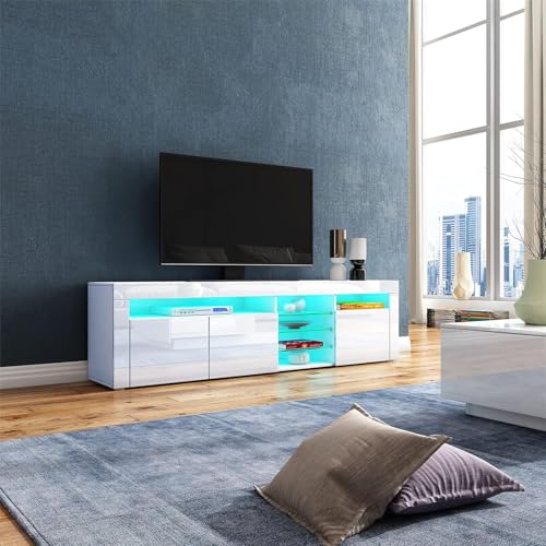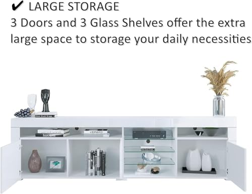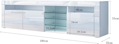 FurniFlex - وحدة تلفزيون بثلاثة أبواب وإضاءة ليد من فيرني فليكس، مقاس 1.8 م، أبيض