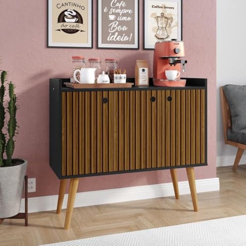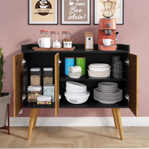 FurniFlex - 3 Doors Wood Premier Buffet for Dining Room and Balcony, Black/Ripado