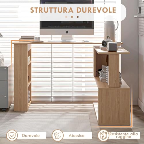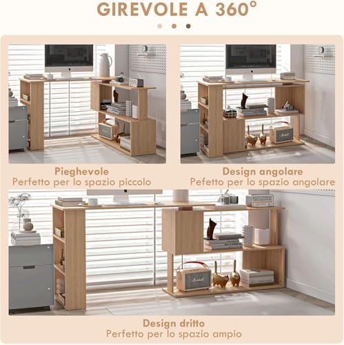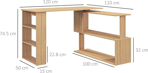 FurniFlex - مكتب كمبيوتر زاوية مزود بـ 5 أرفف بتصميم دوار على شكل حرف L من فيرني فليكس، متوفر بمقاس 1.2 × 1.1 م × 74.5 سم