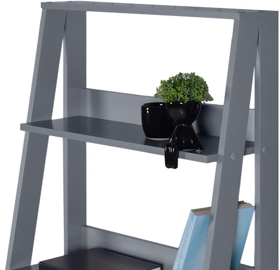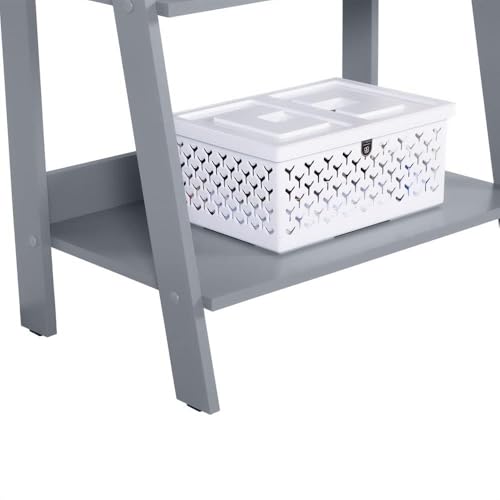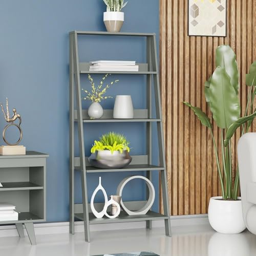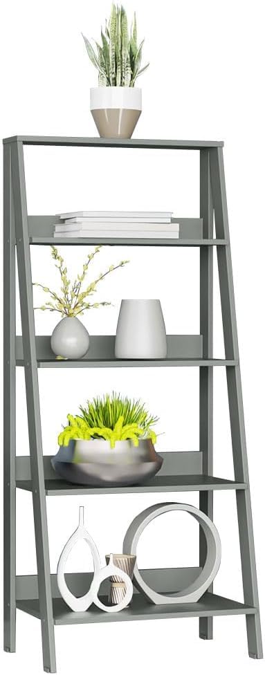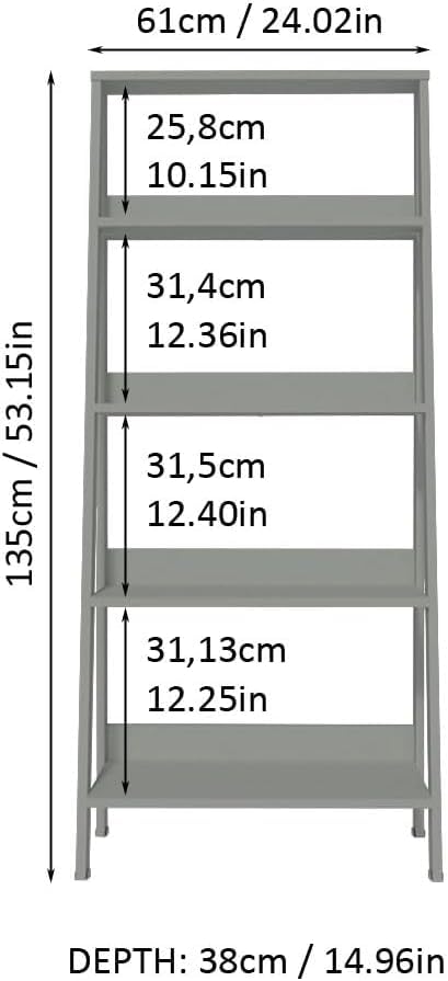 FurniFlex - 5-Tier Ladder Shelf Open Etagere Wooden Bookcase and Bookshelf with Storage Space, 61 cm x 38 cm x 135 cm Size, Grey