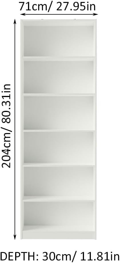 FurniFlex - 6 Shelf Wood Bookcase for Storage and Display, 30 cm Diameter x 71 cm Width x 204 cm Height, White