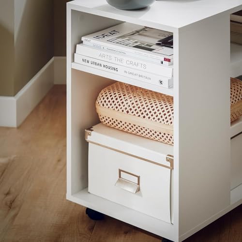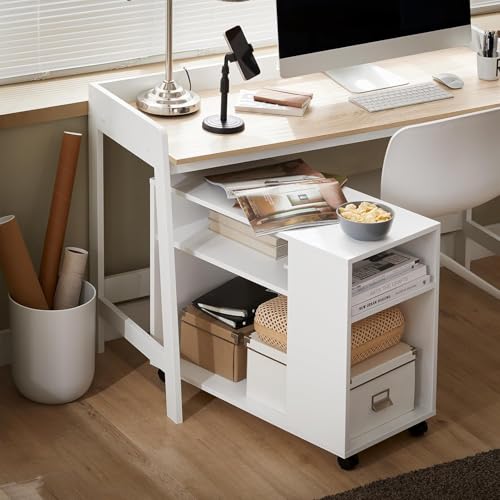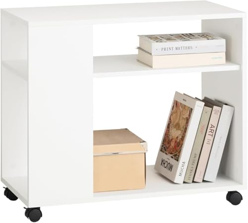 FurniFlex - Bedside Table with 2 Shelves with Wheels, 70 cm x 35 cm x 60 cm Size, White