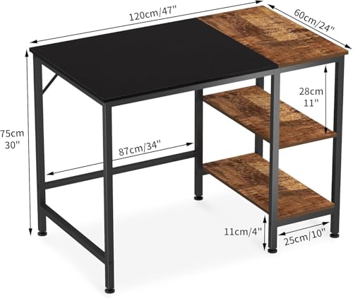 FurniFlex - Computer Desk with 2-Storage Shelves, 120 cm x 60 cm x 75 cm Size, Black