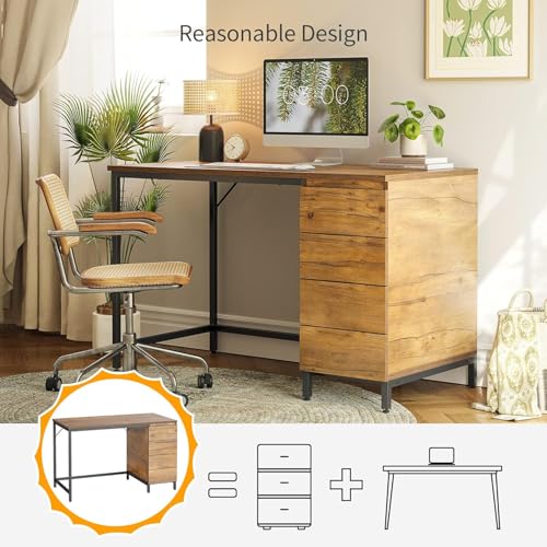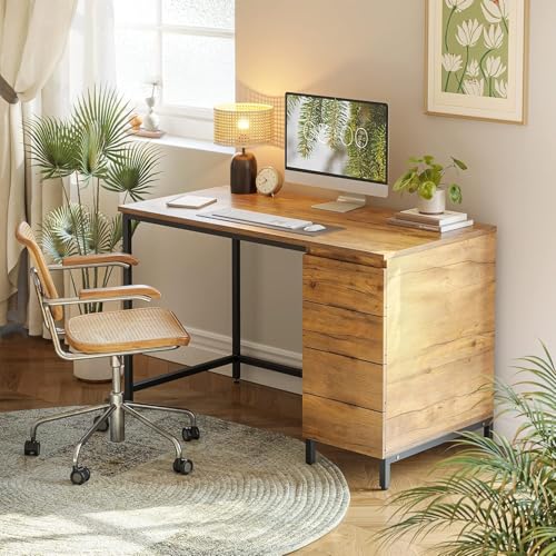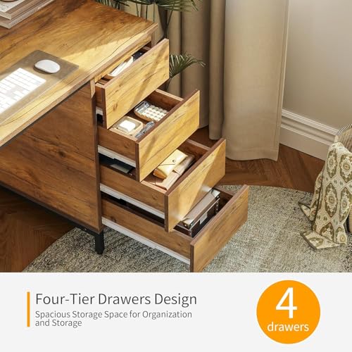 FurniFlex - Computer Desk with 4-Drawers, 47-Inch Size, Fir