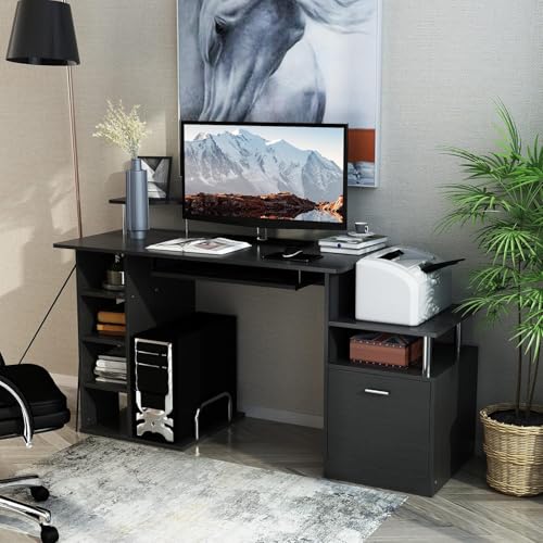FurniFlex - Computer Desk with Storage Drawer, Black