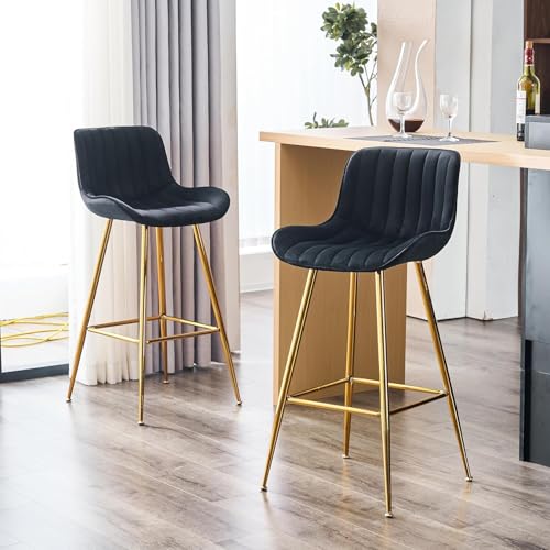FurniFlex - Counter-Height PU Leather Saddle Bar Stools 2-Piece Set, 24 Inch Size, Black