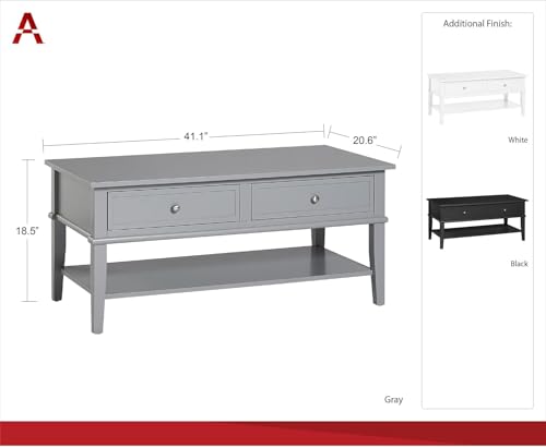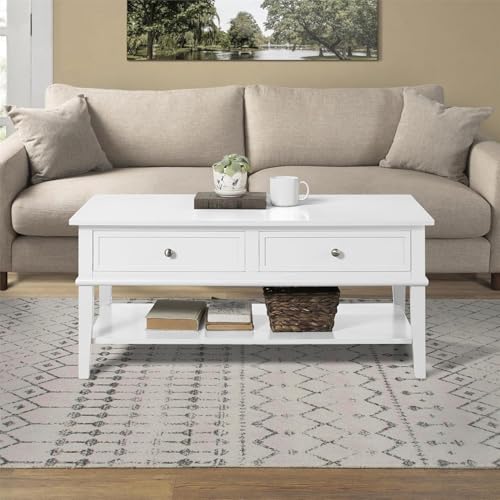 FurniFlex - Franklin MDF Coffee Table, 104.5 cm x 52.32 cm x 46.99 cm Size, White