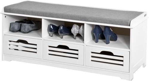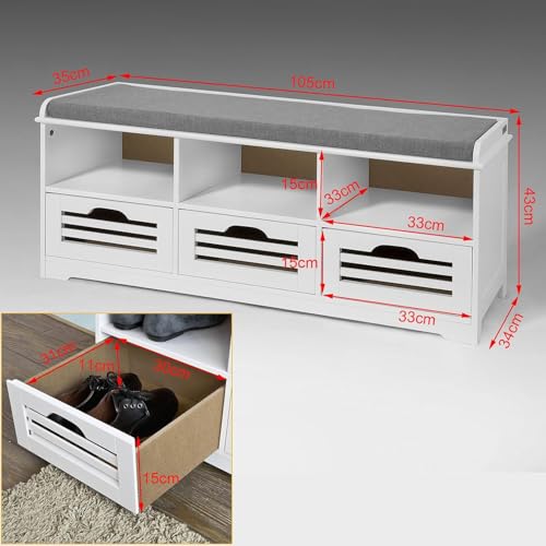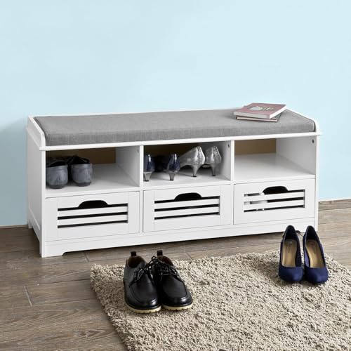 FurniFlex - مقعد تخزين أثاث المدخل مع وسادة مبطنة و3 مساحات تخزين مفتوحة و3 مكعبات من فيرني فليكس