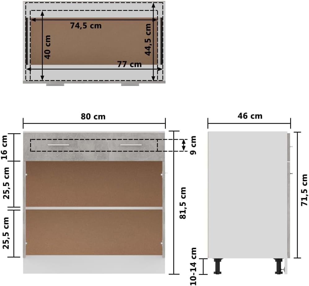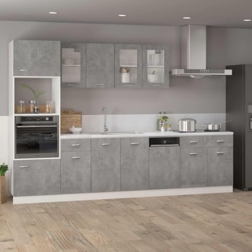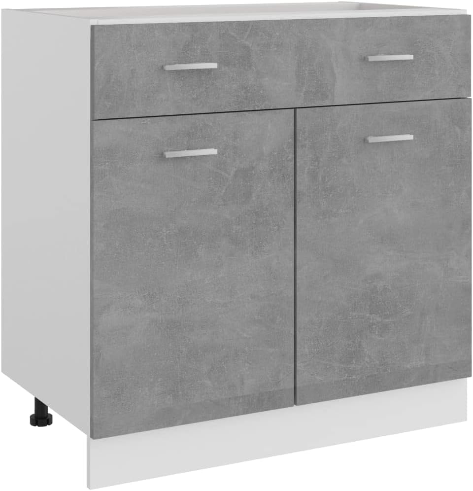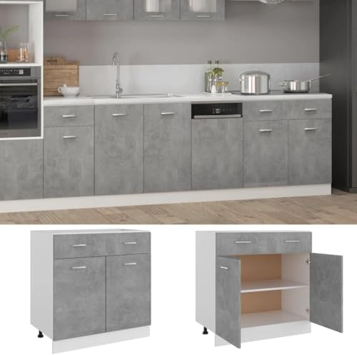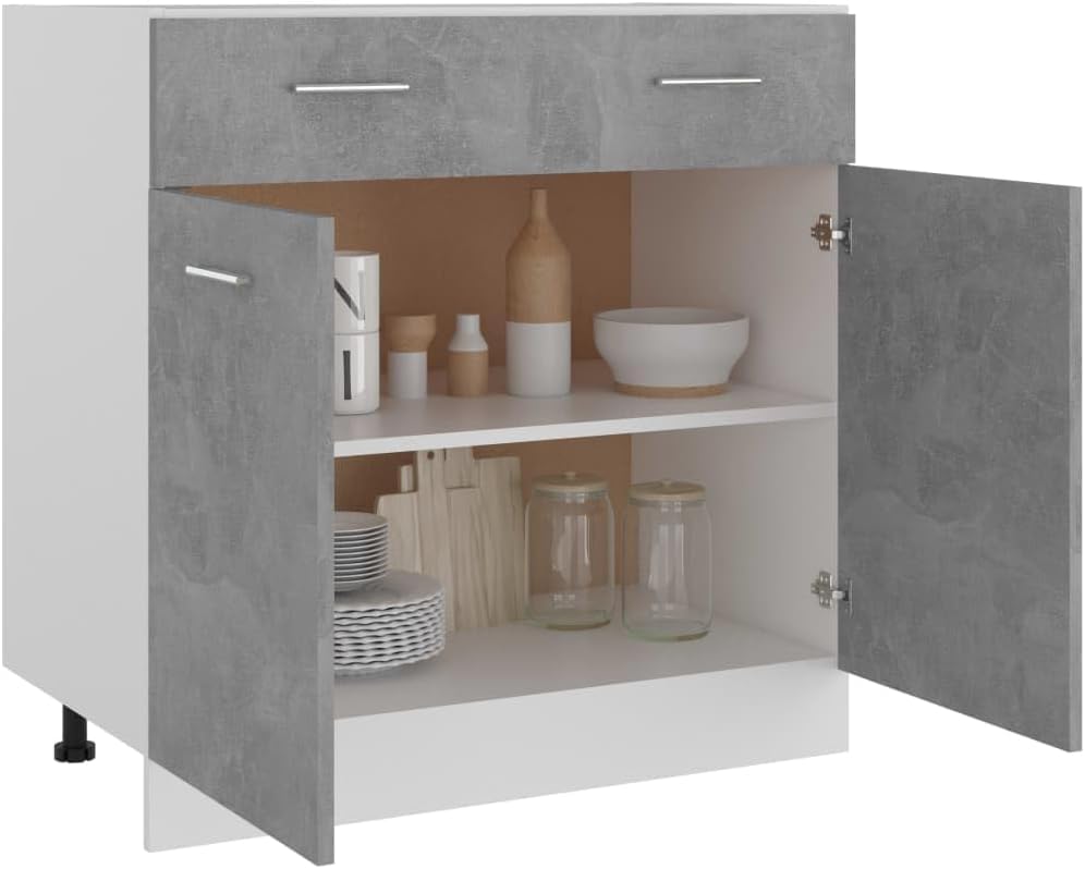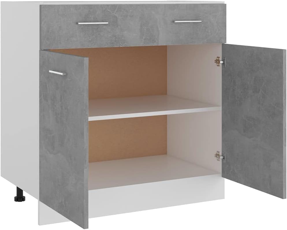 - Modern kitchen cabinet with a concrete grey chipboard finish