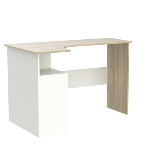 FurniFlex - L-Shaped Computer Desk, Oak Tone/White