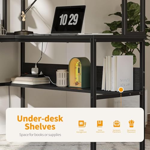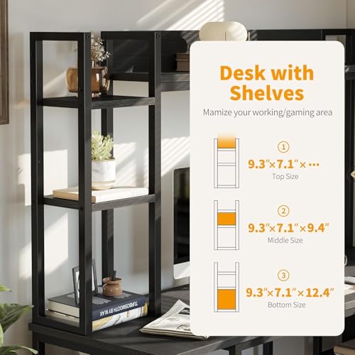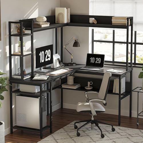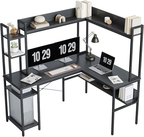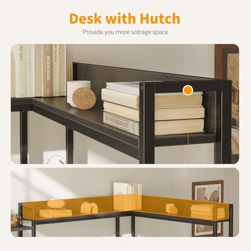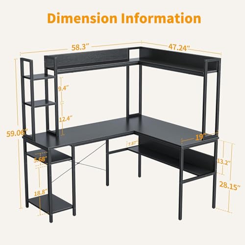 FurniFlex - L-Shaped Computer Desk with Hutch, 60-Inch Size, Black