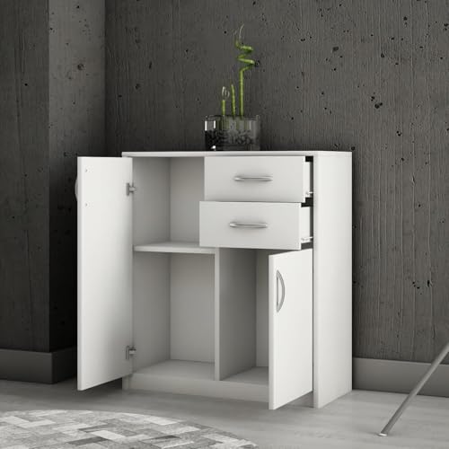 FurniFlex - دولاب ملابس من خشب ليفي متوسط الكثافة من فيرني فلكس، لون أبيض، مقاس 74 سم × 1.8 متر