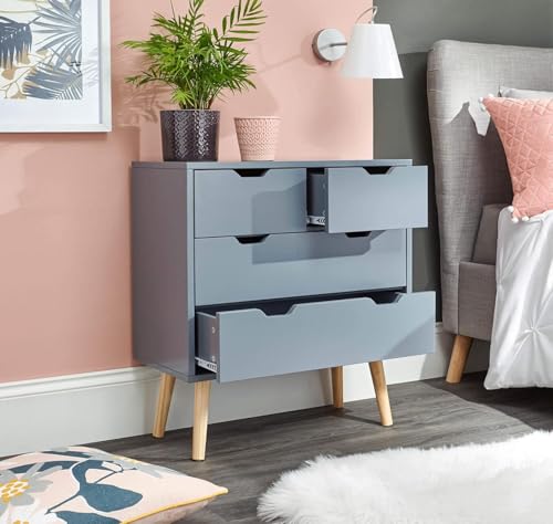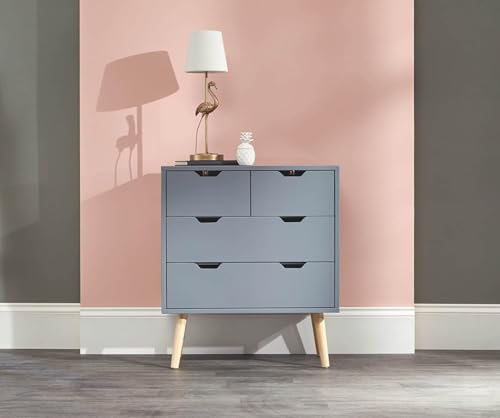 FurniFlex - NBG22CDGR Solid Wood 2+2 Bedroom Chest of Drawers, Grey