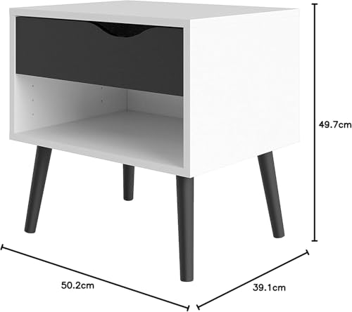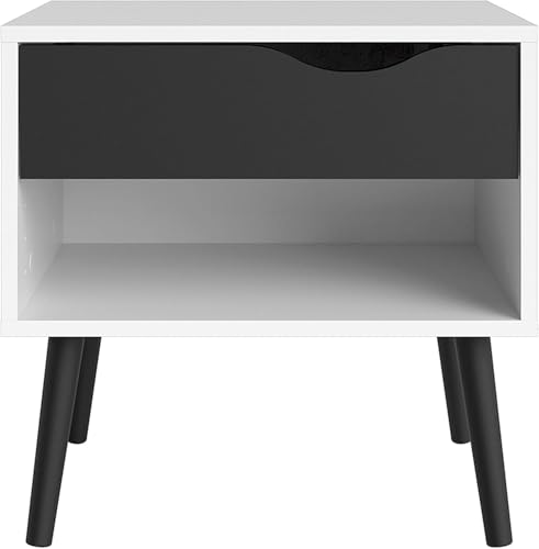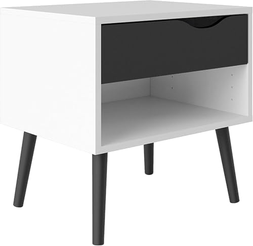 FurniFlex - Oslo Side Table with 1 Drawer, White/Black Matt
