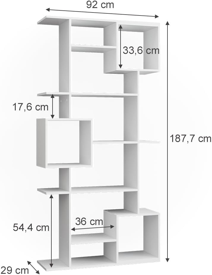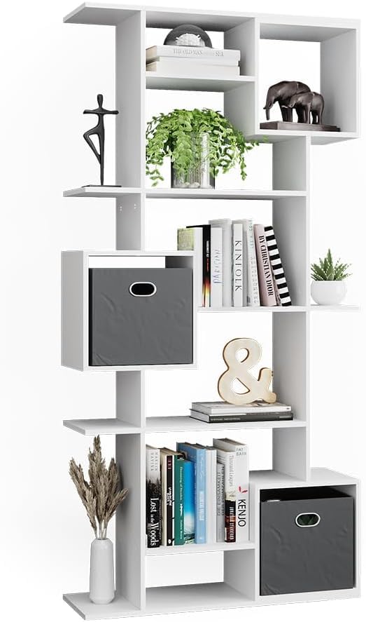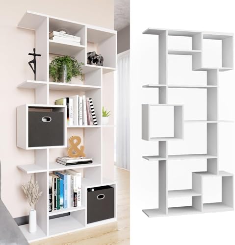 FurniFlex - دولاب كتب مقسم مع 9 مساحات تخزين ورف مكعب مناسب لمساحة الغرفة من فورني فليكس، لون أبيض