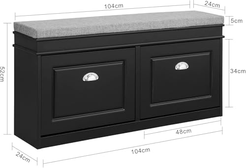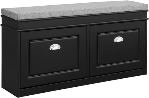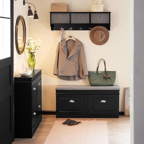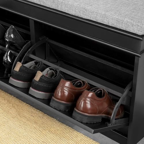 FurniFlex - مقعد تخزين مع وسادة مقعد وطيتين من فيرني فليكس، عرض 1.04 م× ارتفاع 52 سم × قطر 24 سم، أسود