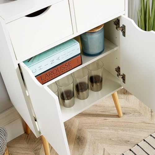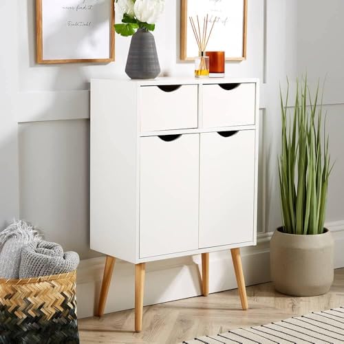 FurniFlex - Solid Wood Scandinavian Design Storage Cabinet Sideboard with 2 Doors and 2 Drawers Cupboard, Large