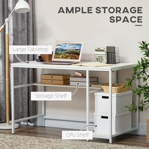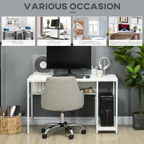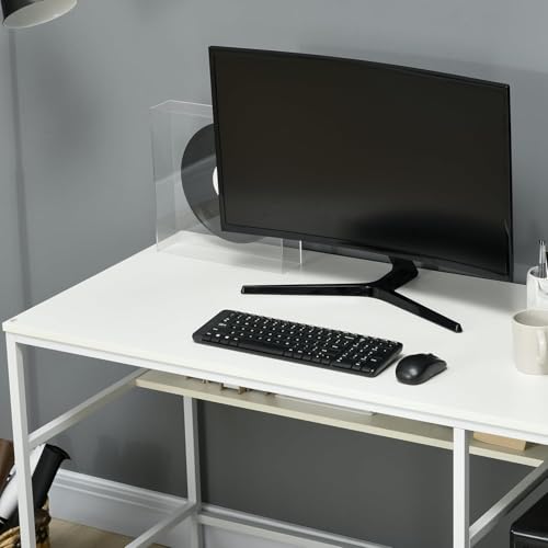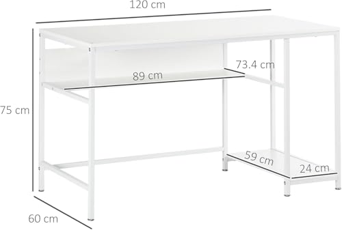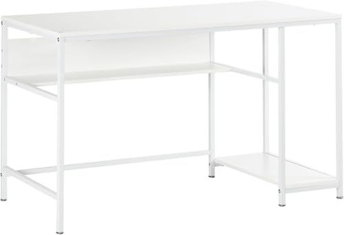 FurniFlex - مكتب دراسة مزود برف تخزين من فيرني فليكس، لون أبيض