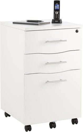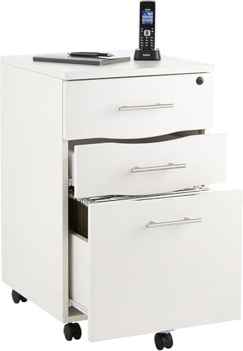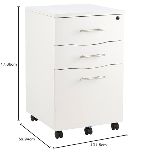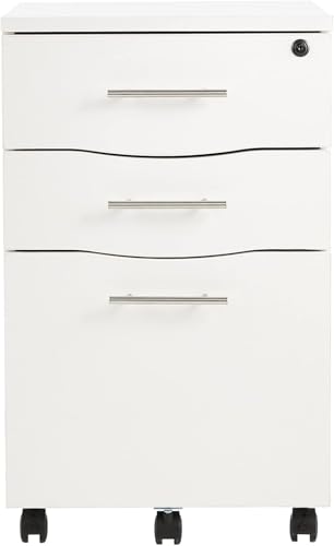 FurniFlex - Under Desk 3 Drawer Wooden Pedestal Cabinet, White