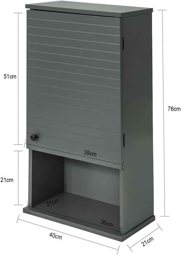 FurniFlex - دولاب حمام يثبت على الحائط بباب واحد من فورني فليكس، وحدة تخزين بباب فردي للحمام