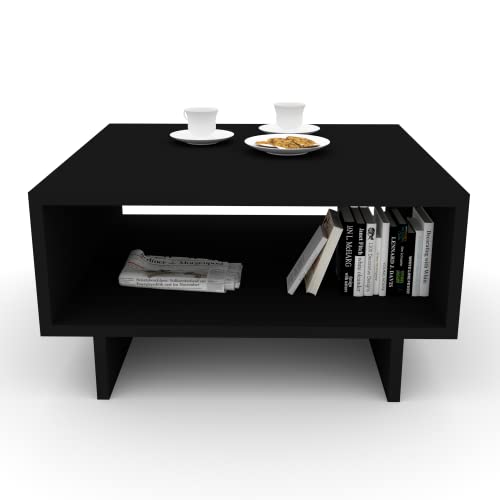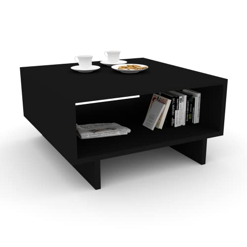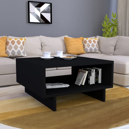Furnifry - Furnifry Modern Square Center Table with Open Storage Shelf/Wooden Coffee Table for Home/Sturdy & Stylish Furniture for Living Area/Wooden Coffee & Sofa Table (Black)