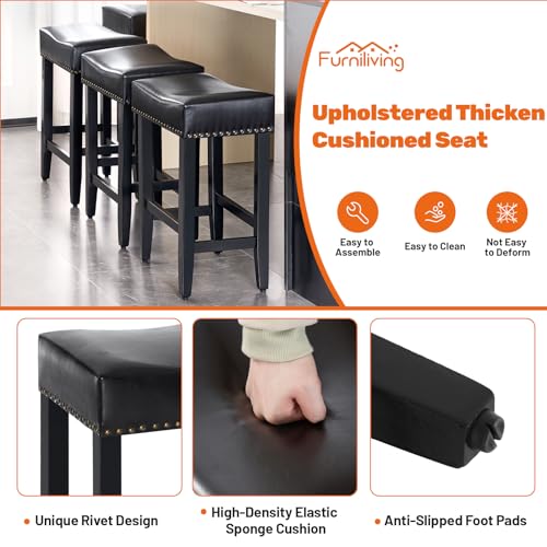 Furniliving - مجموعة مقاعد بارتفاع 65 سم، مقاعد مطبخ منجدة بأرجل خشبية صلبة، مقاعد المطبخ، المقهى، بلون أسود من فيرنيليفينج