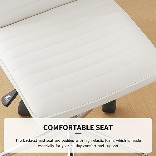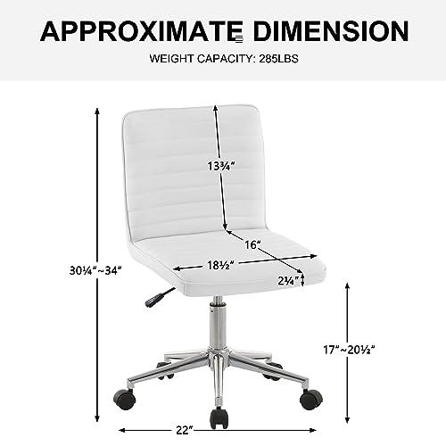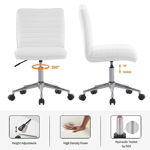 Furnimart - Furnimart Faux Leather Mid-Back Armless Office Desk Adjustable Task Chair Home Office Chair Small Swivel Chair Dorm Chair with Smooth Casters (PU White)