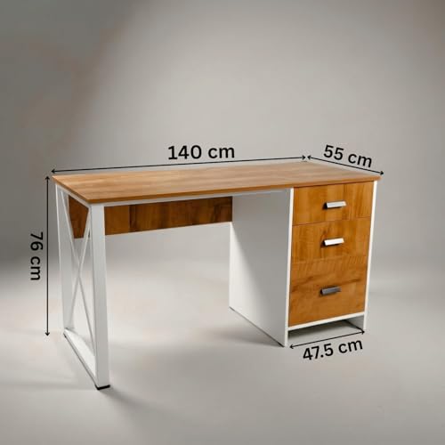 - DIMENSIONS: Large work surface measuring 140 cm x 55 cm with a height of 75 cm, perfect for a spacious home office setup