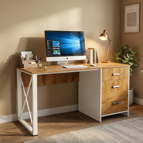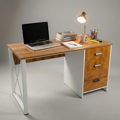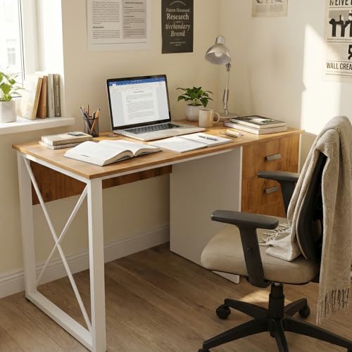 - MODERN DESIGN: Contemporary dual-tone finish combining wooden texture with white frame, suitable for any home office décor