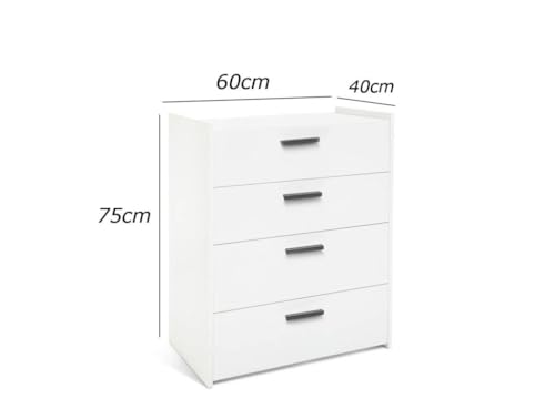 - Modern MDF - 75cm H - 24" W - 16" D - Consists of 4 drawers to keep your personal items organized, Made of high quality MDF 16 ml with matte white melamine outer layer by French Store