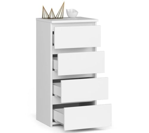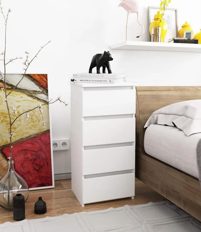 - Modern MDF - 34" H - 16" W - 14" D - 14" consists of 4 drawers to keep your personal items organized, Made of high quality MDF 16 mil with matte white melamine outer layer by French Store
