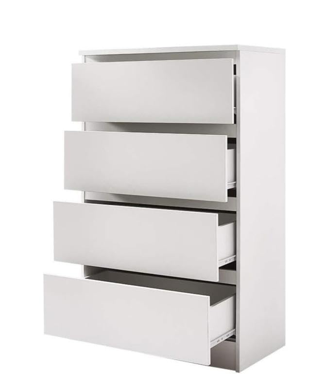 - Modern MDF - 90cm high - 60cm wide - 42cm deep, consists of 4 drawers to keep your personal items organized, Made of high quality MDF 16 ml with matte white melamine outer layer by French Store